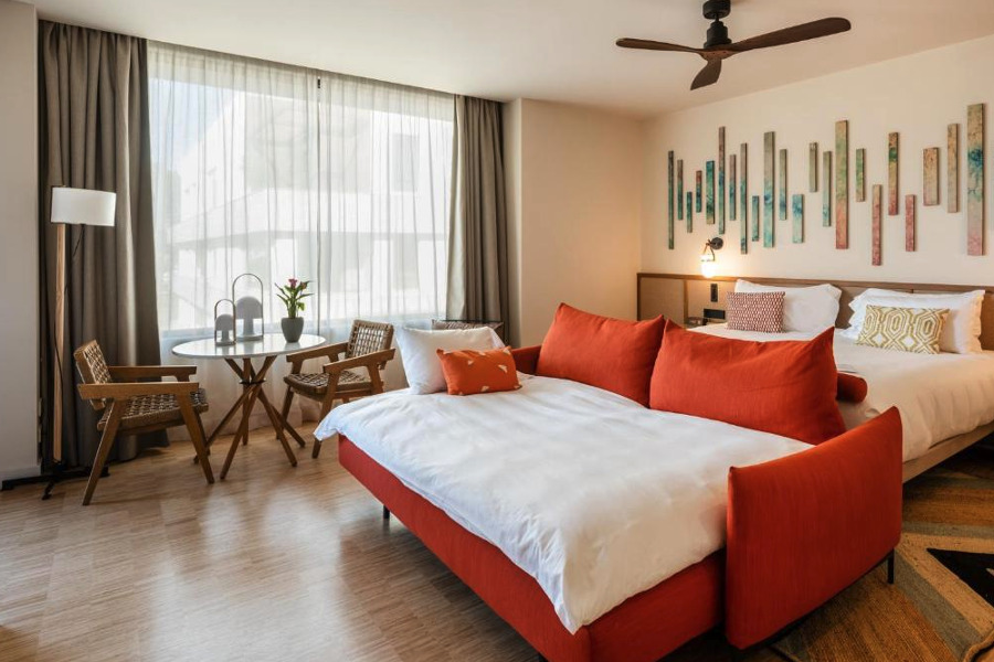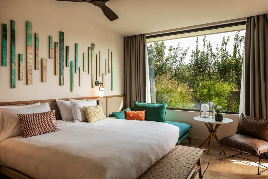 Mit seinem eleganten mediterranen Interieur ist das Hotel ideal für den anspruchsvollen Freizeitreisenden. Die Zimmer des Kimpton Aysla Mallorca spiegeln den mediterranen, entspannten und luxuriösen Stil Mallorcas wider. Sie wurden von dem lokalen Architekten Guillermo Reynés entworfen und verbinden traditionelle Elemente mit modernem Lebensstil. Die echten 33 m² großen Zimmer verfügen über ein Kingsize-Bett, zwei Einzelbetten oder ein Queensize-Bett (2 davon begehbar).