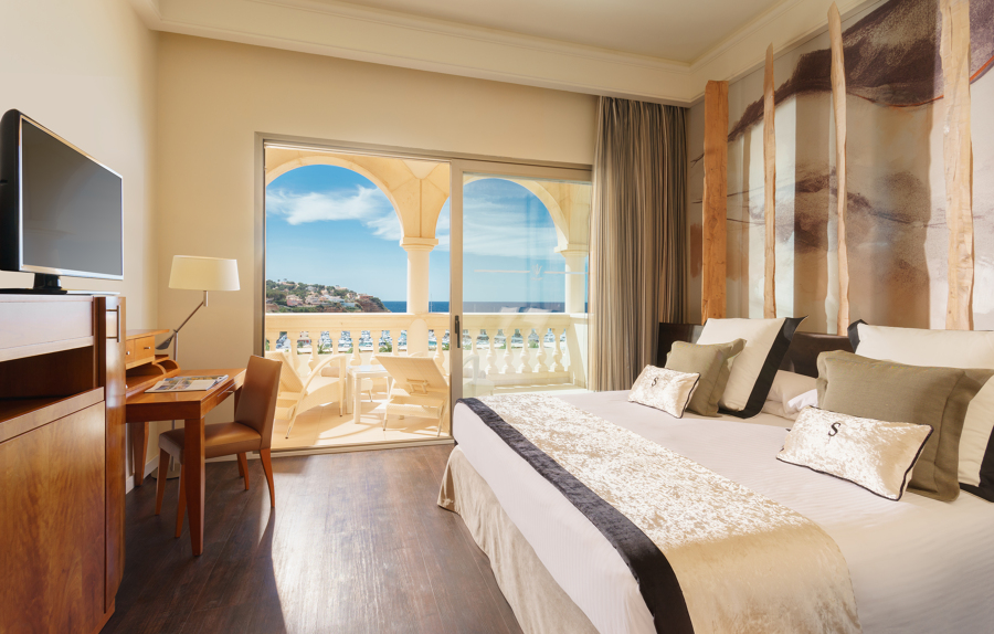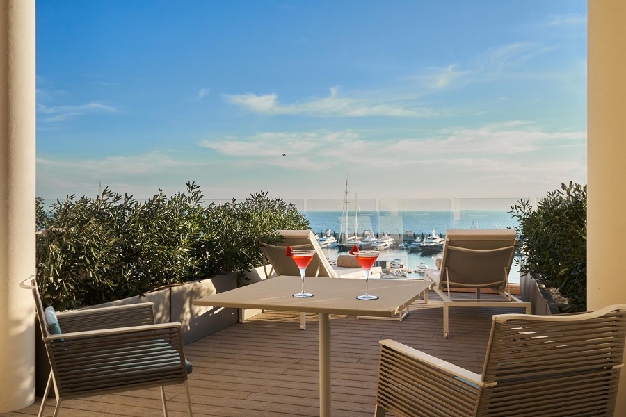 Die Deluxe Doppelzimmer sind mit einer privaten Terrasse mit Meerblick ausgestattet.