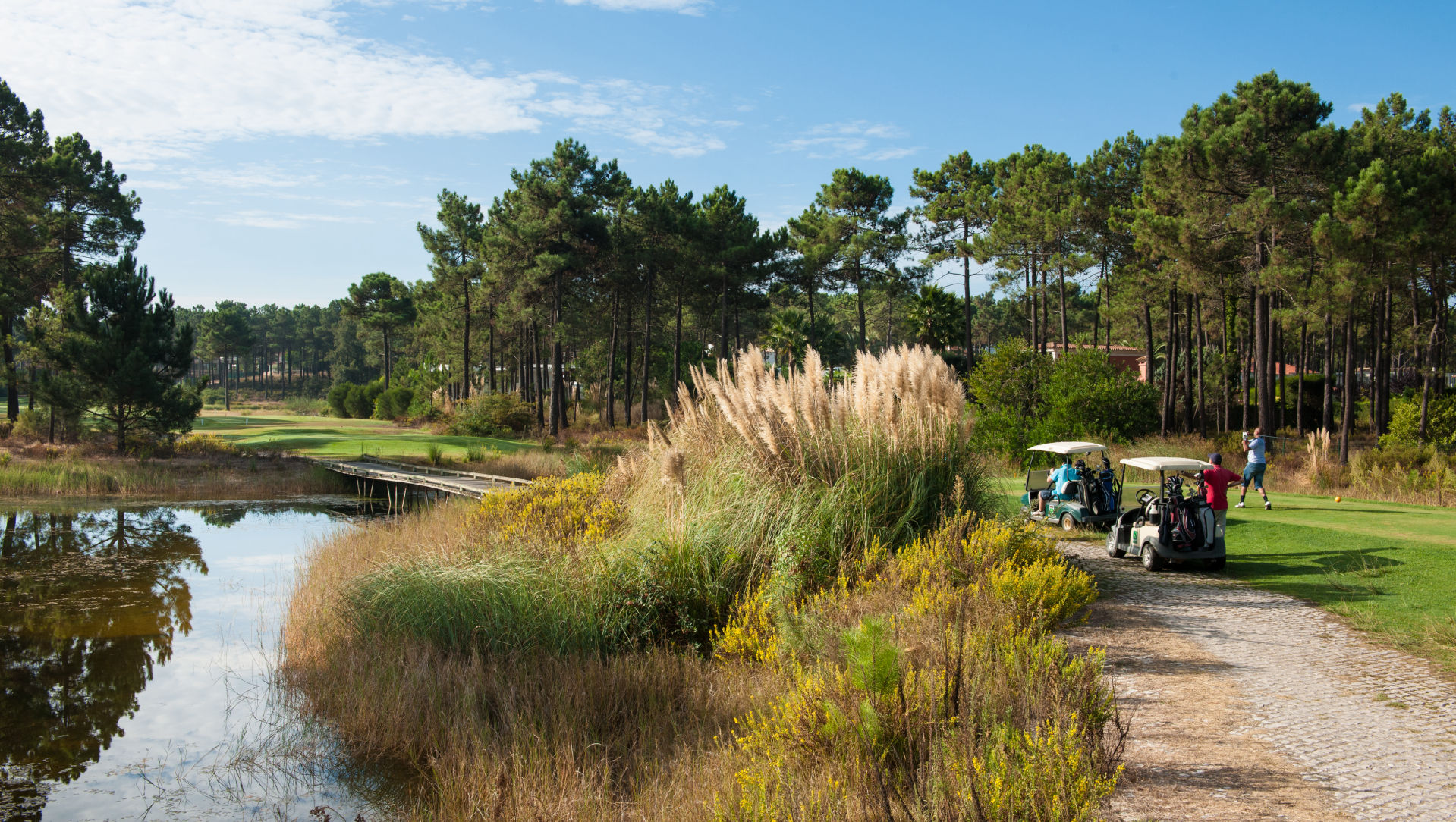 "Aroeira II" ist attraktiv und herausfordernd - die Lage und die Auslegung des Platzes sind ein wahrer Spielgenuss. Basierend auf einem modernen Golfspielkonzept erstreckt sich Aroeira II wellenförmig unter Pinienbäumen und verfügt über große Seen. Sein Gras, das neueste 'Penn A1', zum ersten Mal in Portugal verwendet, macht die Grüns außerordentlich schnell und stellt somit eine Herausforderung für jeden Golfer dar. Im Gegensatz zu Aroeira I, gibt es hier Fairwaybunker, einige davon im besten schottischen Stil gehalten. Neben diesen Sandhindernissen wurden fünf große Seen angelegt, die besonders auf den letzten neun Löchern das Spiel erschweren.